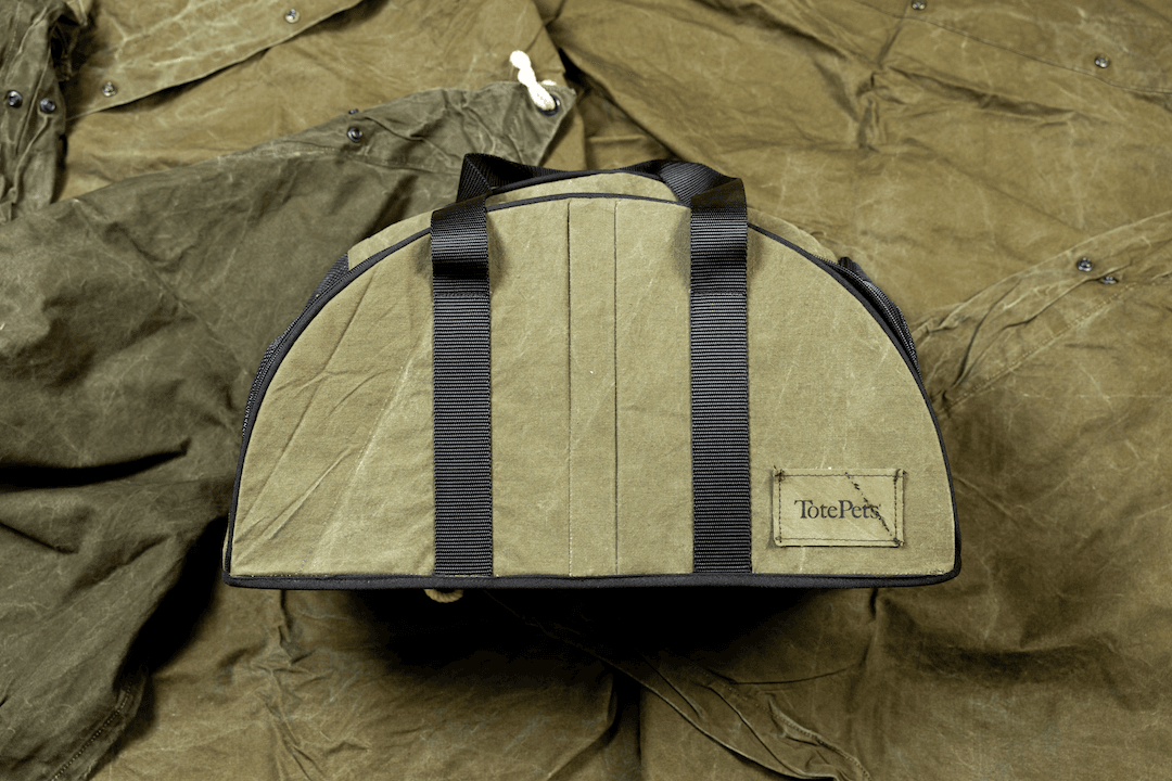 TotePets® are created with exceptionally durable Cotton and Polyester material originally used as military tents. As a result, they are a combination waterproof, repellent along with the Introduction of polyurethane (PU)Lighter and more weather and water resistant fabrics began to replace pure canvas.